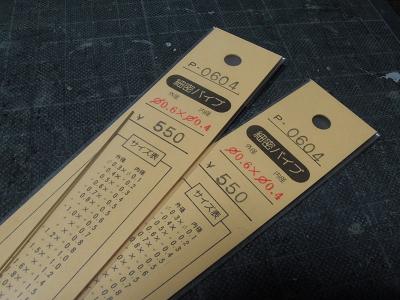 屋根上配管の修正 ・精密パイプ...。 エコーさんから発売されていることをMAROON MODEL 管理人様より御教示頂き、早速購入。 1本\550ですが、背に腹は変えられません。 |