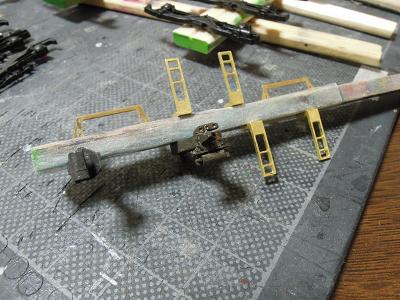 妻面ステップ取付け ・塗装したステップを車体に実装します。 取付けには瞬間接着剤を使用しています。 |