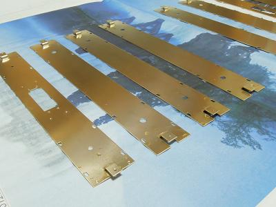 ドア靴ヅリ取付け。 ・乗務員ドア、客用ドアの靴ヅリを半田付けします。 パーツが小さいことから,熱による曲がりを防ぐ為、30Wの コテで半田付けしています。 |