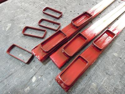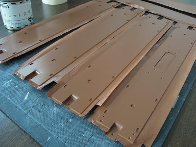 台車周辺塗装 ・床板も塗装します。 床板は事前に酸洗いを行い、クレンザーで磨きだした後、 塗装に望みました。 |