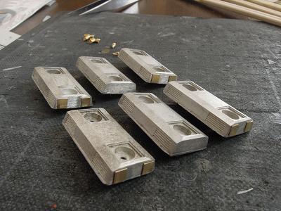 パンタ台組立 ・一旦キサゲ処理。 7019Fではまとめてキサゲ処理を行いましたが、結構 大変だったので、今回はこまめに処理しています。 写真は先頭車の8002用。 |