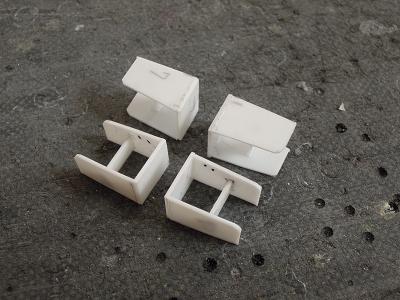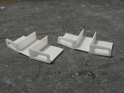 側面方向幕ライトケース ・側面方向幕のライトは今回天井と一体化しています。 そのため側面と隙間が出来、そこら光が漏れると想定 されたので、遮光用のライトケース(というよりカバー)を 作成しました。 t=0.5mmとt=1.2mmプラ板を切り出しています。 |