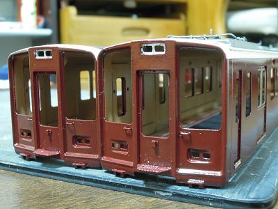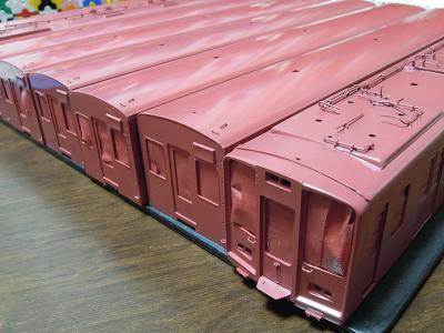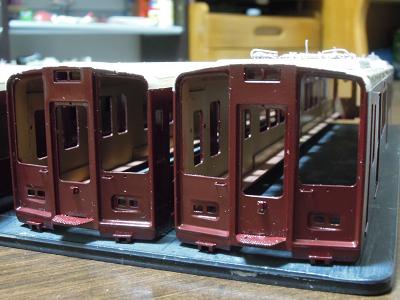 車体箱組み ・先頭車前面も同様です。 |