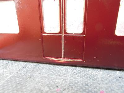 貫通ドア塗装 ・塗装完了。 車体リワークの際、社内にマスキングテープを貼り ましたが、 剥す際に”ぺリッ”が複数箇所。 併せてリワークしておきました。 |