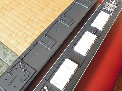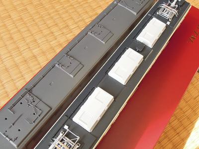 屋根上パーツ取付 ・車体中央部のヒューズボックス類も実装。 |
