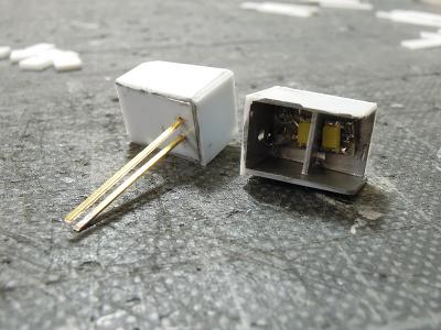 室内灯ユニット製作 ・室内灯用ライトユニット。 Φ3mm砲弾型を2個実装したユニットを両車端に装着 します。 今回購入したLEDは、試作時に使用したLEDの様に 青っぽくなく蛍光灯に近い感じでしたので、試作ユニット 分も換装しました。 なおLED1個に付き各々680Ωの制限抵抗を接続して います。 量産化にあたり、基板を貫通スルーホールタイプに 変更し、はんだ付けの作業性と仕上がりの改善を 図っています。 また幅を広くすることで、天井板との接着性も高める ことを狙っています。 |