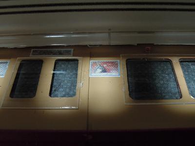 車内壁広告貼付け ・妻面貫通ドア上とその右の車内注意も作って おきました。 |