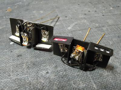 標識等・尾灯ライトユニットの移設 ・先に記載したとおり、車体側に設置した場合、床板端子 との接触不良が発生したので、床板側に移設し、端子に はんだ付けしました。 |