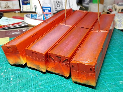 | ・車体組立(2019/12/1) 各種パーツを塗装します。 写真は車体関連。 |