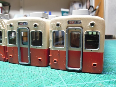 | ・車体組立(2019/11/18) 方向幕と、客ドアのゴムもグレーを入れています。 |