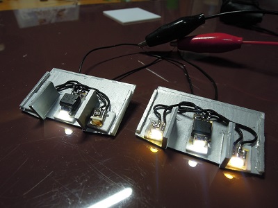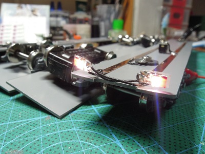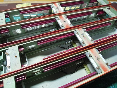 | ・車体塗装(2019/12/25) 各種ライトユニットを車体に実装していきます。 室内灯は夕庵式です。 |