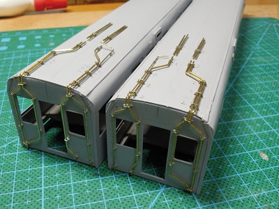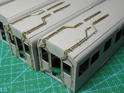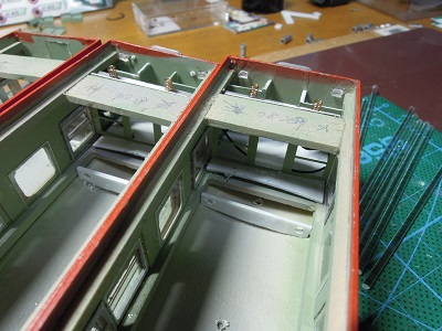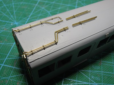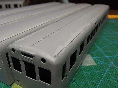 | ・車体組立(2018/9/22) 雨樋の接着は、薄く溶いたサフェを流しています。 |