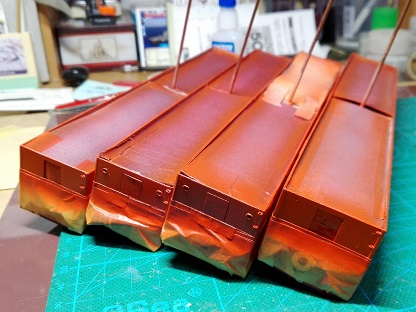| ・車体塗装(2019/12/28) 側面からの俯瞰。 あとは車番の貼り付けで落成です。 |