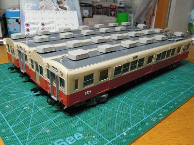 | ・落成(2019/12/30) パンタ車7829(左)と7824(右)を屋根上から俯瞰。 パンタは未実装ですが、後日入手します。 |