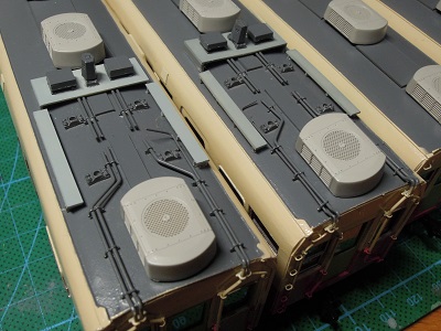 | ・車体組立(2018/9/17) 7829の配管を屋根上から。 梅田寄りの奇数編成は、配管が山側/浜側で反対になります。 |