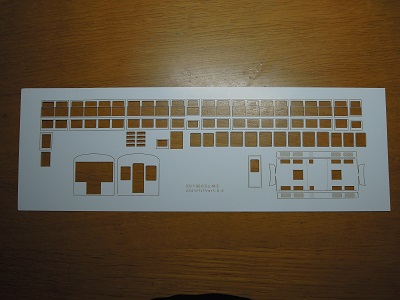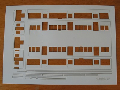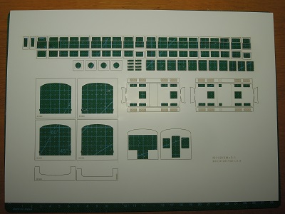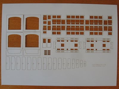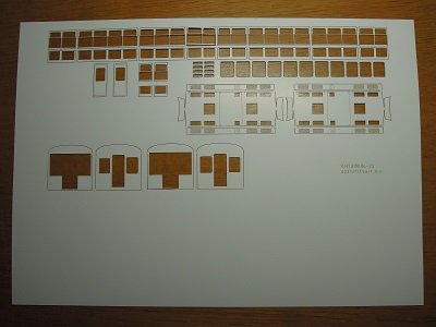 | 1913 ・1913用型紙のパーツ用です。 窓サッシ、妻板、クーラーで構成されています。 床下機器類は、適当なパーツで代用するか、同じく紙で 構成するかは思案中です。 |