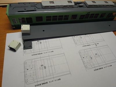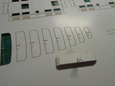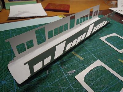 | 1913F車体組立 ・展開図をプラ板に貼付け、切出します。 |
