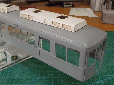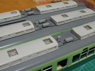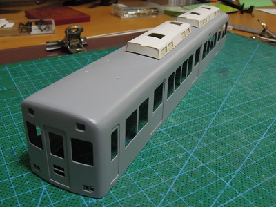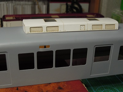 | 1997車体組 ・これにて下地処理完了。クーラーを乗っけてみます。 |