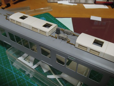 | 1913車体組 ・ヒューズボックスはエコー製、避雷器はカツミの京阪用 (小田急用)を使用しています。 |