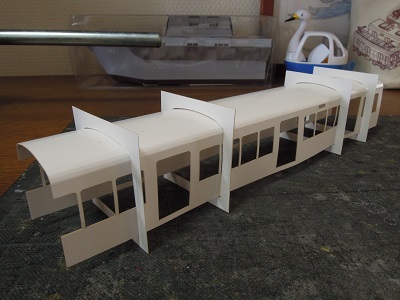 | 1997車体組 ・テンプレートに嵌めてしばし放置。 形状の癖を付けています。 |