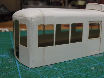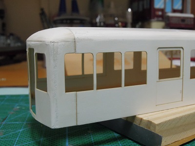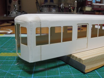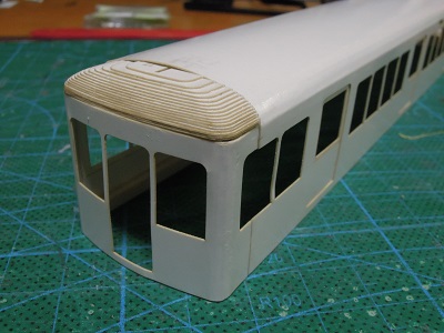 | 1913車体組 ・おでこのRは、テンプレートに併せ削り出していきます。 |