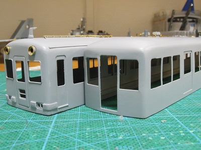 | 1913F車体組 ・妻面ステップも実装し、塗装フェーズに入ります。 |