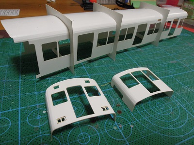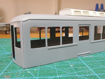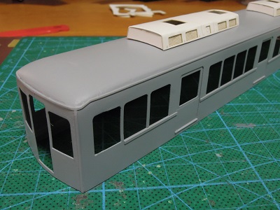 | 1913車体組 ・前面と屋根の接合部の隙間が広かったようですので、 データは修正し、模型はパテで埋めて処理します。 |