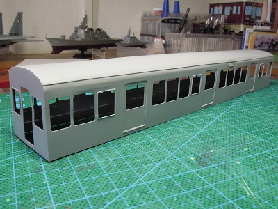 | 1914車体組 ・雨樋、ウインドシル、ドア靴ヅリを取り付けた状態。 |