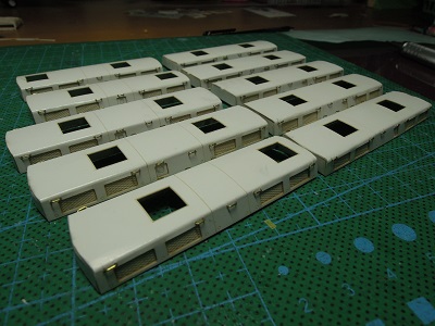 | 1913F車体組立 ・1ユニットに12個、5両で120個。 面倒ですね。 |