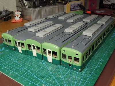 | 1958、1985車体組 ・クーラーも平行して組立てます。 |