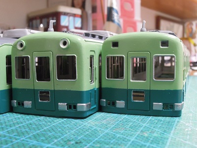 | 1958、1985車体組 ・前面と屋根の接合部はパテで埋めて処理します。 |