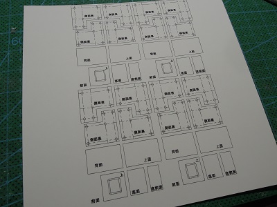 | 1958 ・中間T車1958の型紙です。 型紙としては新製、両妻面は切妻のタイプとなります。 車体用型紙と、窓・クーラー等のパーツ用型紙の2枚 構成にしています。 JWCADで形式図を作図した後、展開図を作成し、その データを元にレーザーカッターで切り抜いて頂いて います。 写真は車体用で、2枚の紙を貼り合わせる構成にして います。 |