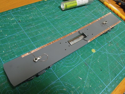 | 1913F床下組立 ・DIPスイッチと通過標識灯+尾灯ユニットを実装した状態。 |