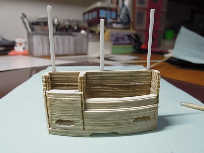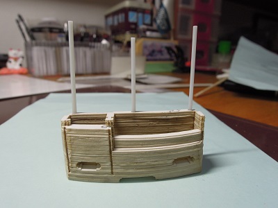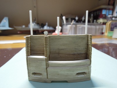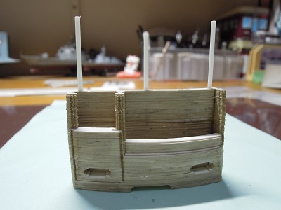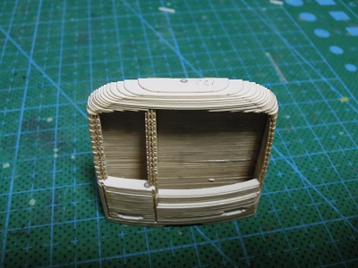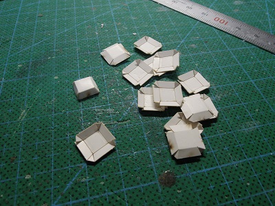 ・車体組立(2023/7/8) ベンチレータは型紙から切出し、台形状に組立てます。 |
