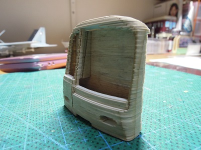 ・車体箱組(2022/1/3) 運転台パーツが嵌る様に、内側を成型します。 |