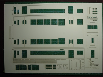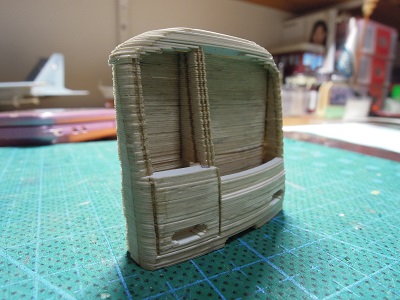 ・先頭車用型紙 写真は前面部その1。 112枚積層構成になります。 |