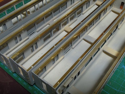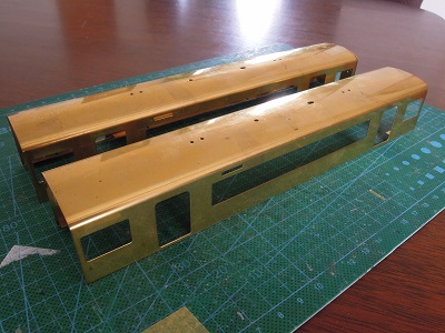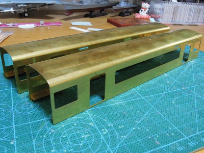 ・車体箱組(2022/5/2) 残り2両分はこちら。 金属車体ということで4号車、5号車のM車に充当します。 模型では4号車に動力を組込む予定です。 |
