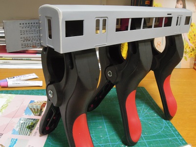 ・車体箱組(2022/8/29) エポキシ系接着剤で貼付け、半日程度固定します。 |