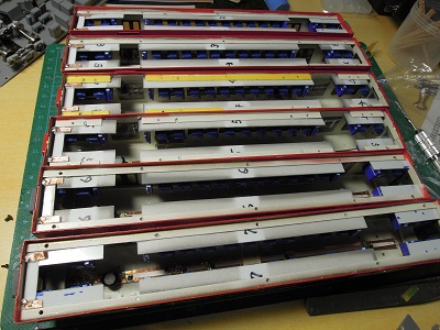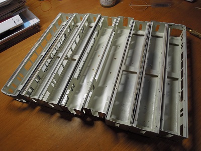 ・車体組立(2023/7/15) 床下機器類8両分完成。 |