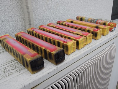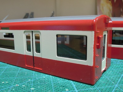 ・車体塗装(2022/9/11) 京急赤を吹きました。 こちらも日光さんの塗料「京浜急行 赤」を使用しました。 GMカラーも入手していたのですが、暗めだという情報で 日光さんを使用しました。 |