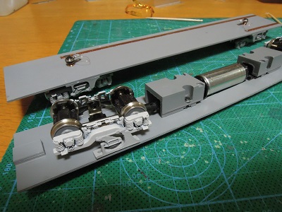 ・床下組立(2022/12/25) 車輪をねずみ1号で塗装して組立。 |