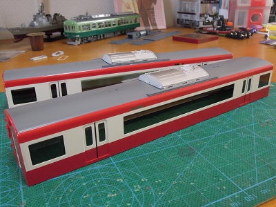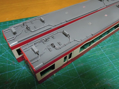 ・車体塗装(2022/9/25) そのまま屋根グレー。 GMカラーNo.9:ねずみ1号を吹いています。 |