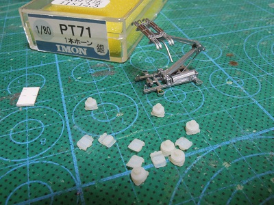 ・パーツ買出し(2022/10/22) 今回は足回りの細かいパーツとパンタ周り。 御本尊はIMONさんのPT71(1本ホーン)を使用しました。 |