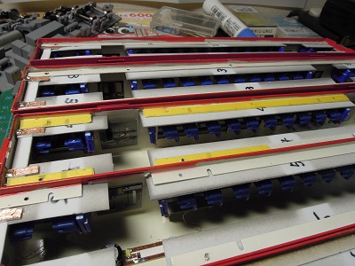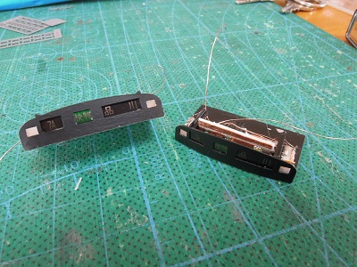 ・車体組立(2023/7/1) 前照灯・表示器ユニットと室内灯ユニットを車体に実装 します。 |