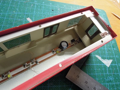 ・車体組立(2023/7/1) 室内灯のちらつき防止用コンデンサ。 |