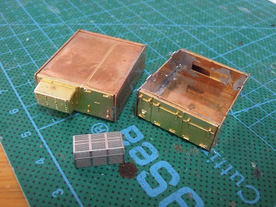 ・車体箱組(2022/5/2) 車体に妻板とドアを半田付けします。 |