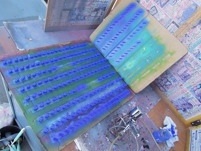・前面部組立(2021/9/29) 31枚目から40枚目を積層して接着材を流した状態。 |