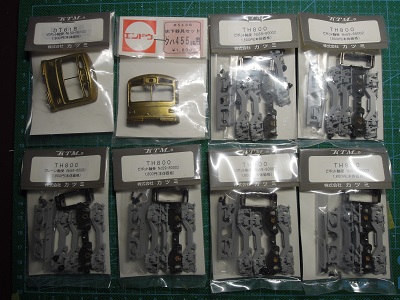 | ・前面と台車 関東にお住いのTSさまから、京急800形の型紙を 譲り受けることになりました。 型紙だけでなく、前面パーツ(谷川?)と、KTMのTH800 台車6両分まで付属頂きました。 |