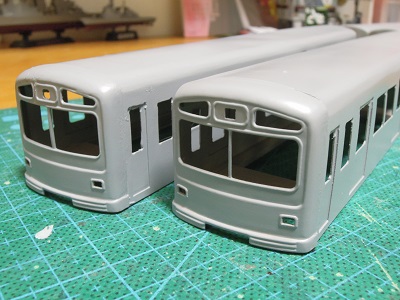 | ・車体箱組(2022/9/15) 前面パーツと車体の継ぎ目を平滑化して行きます。 |