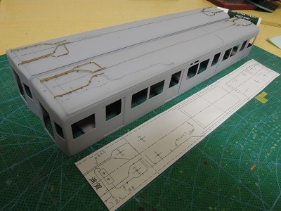 | ・車体箱組(2023/1/21) 雨樋とドアの靴ヅリを貼り付けます。 |